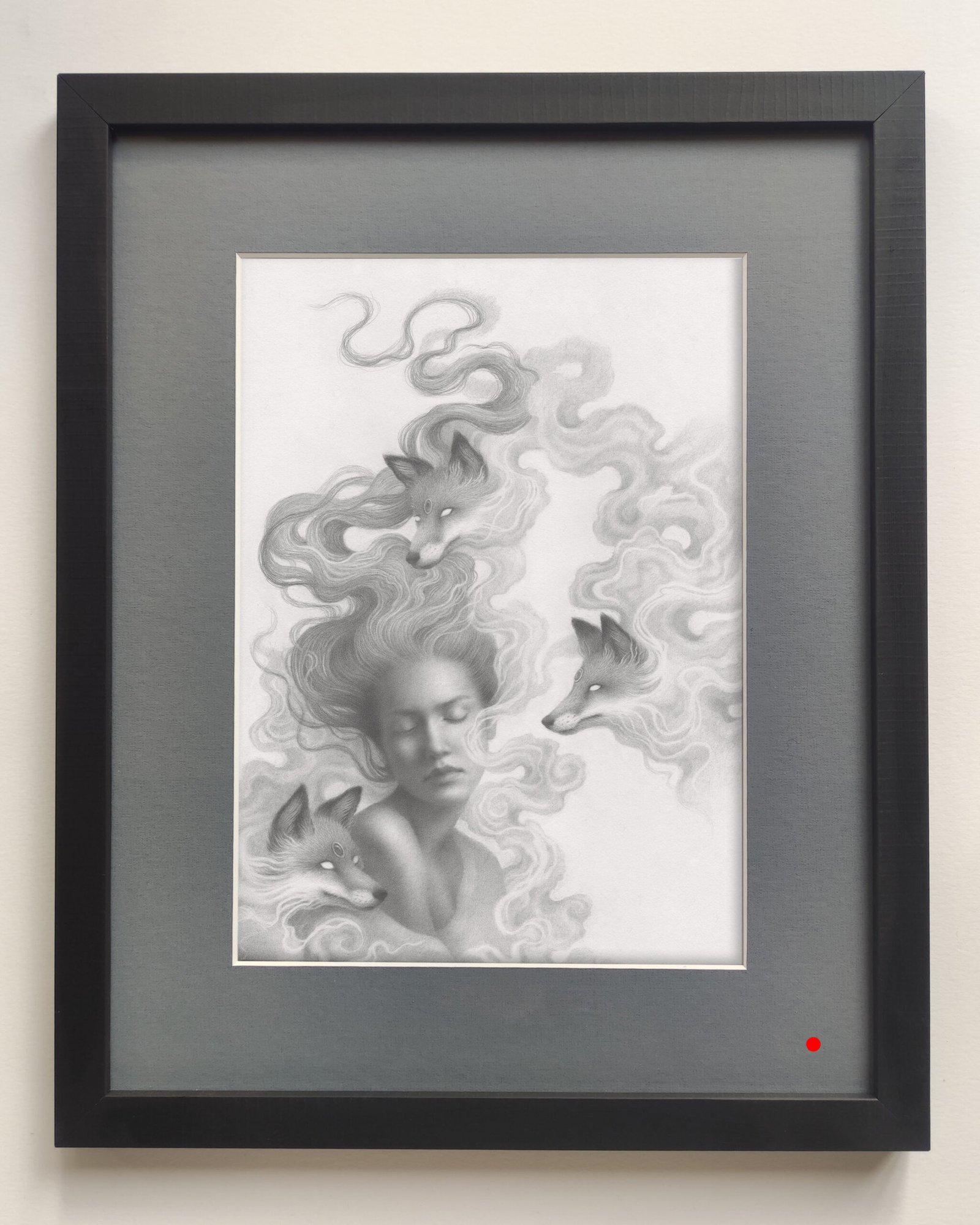 Original graphite drawing on bristol paper fully framed and ready to hang on the wall.